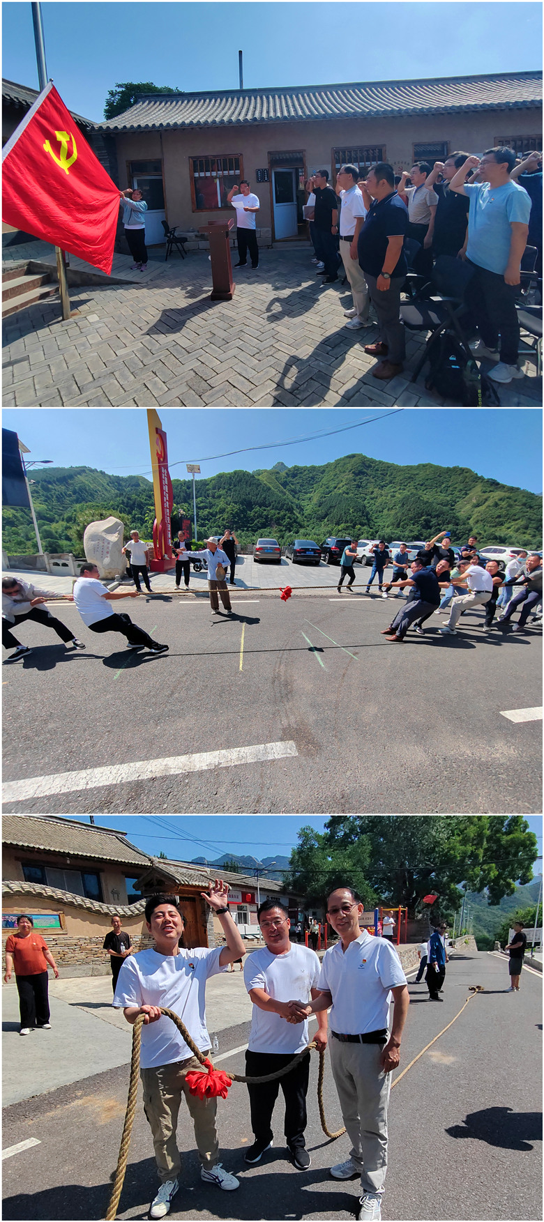 結構所黨支部與顧家臺黨支部開展聯合黨日活動。顧家臺村支部書記顧錦成同志帶領全體黨員在黨旗下莊嚴宣誓,重溫入黨誓詞。隨后,兩個支部的黨員開展拔河聯誼活動。