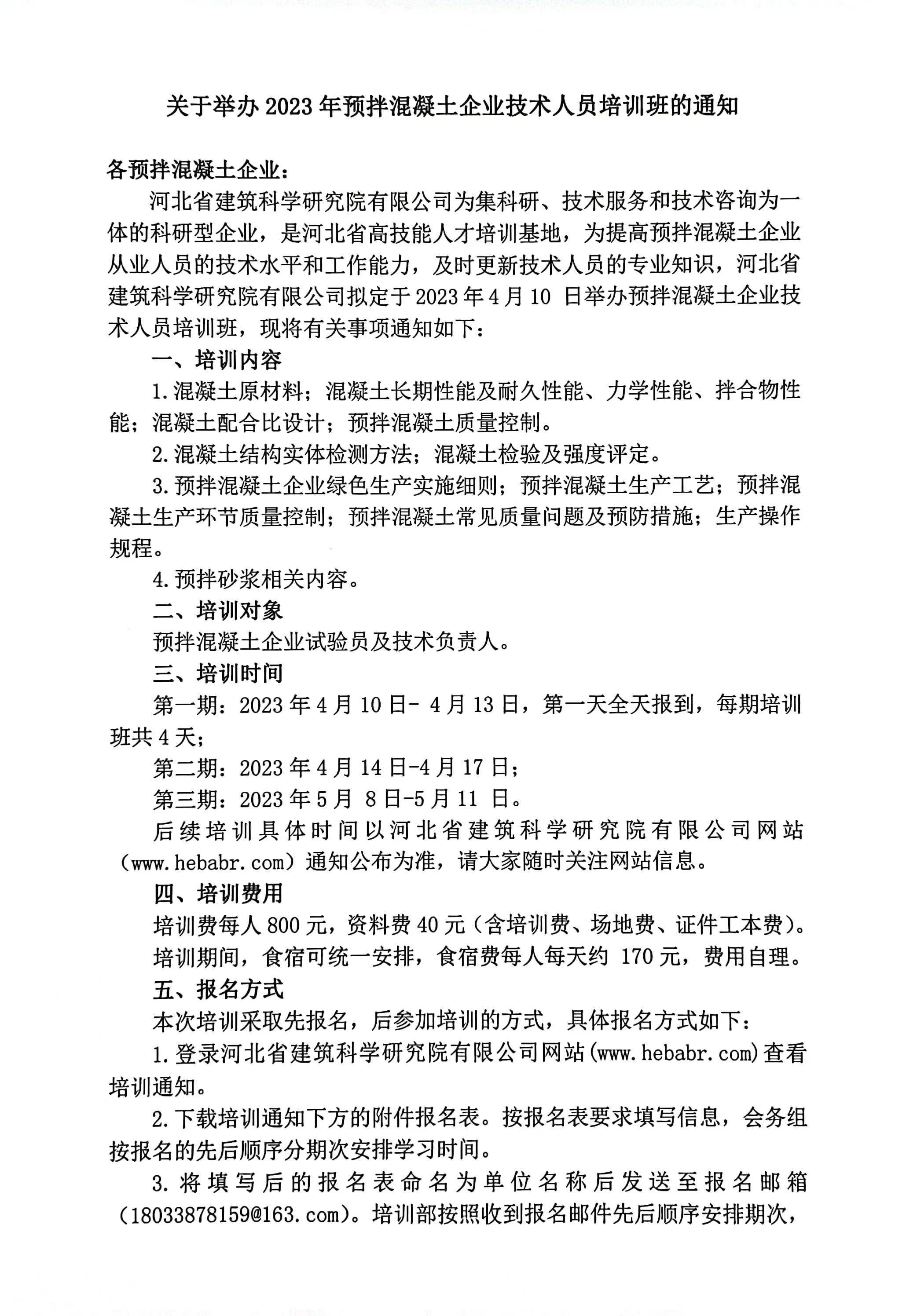 2023年預拌混凝土企業(yè)技術人員培訓班報名表