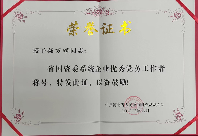 公司智能所支部委員會榮獲“先進基層黨組織”榮譽稱號;下屬公司冀科公司黨支部榮獲“黨建工作與生產(chǎn)經(jīng)營深度融合先進單位”榮譽稱號;公司黨委書記、董事長強萬明同志榮獲“優(yōu)秀黨務工作者”榮譽稱號;公司專職黨委副書記句德勝同志榮獲“優(yōu)秀共產(chǎn)黨員”榮譽稱號。